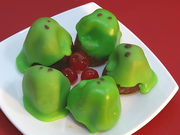 Broscuţă, Mămăruţă (80 gr) - Clasică, simplă, un melanj cu aromă de cafea, cacao şi rom, înrobit într-un fondant dulce, colorat şi delicios.